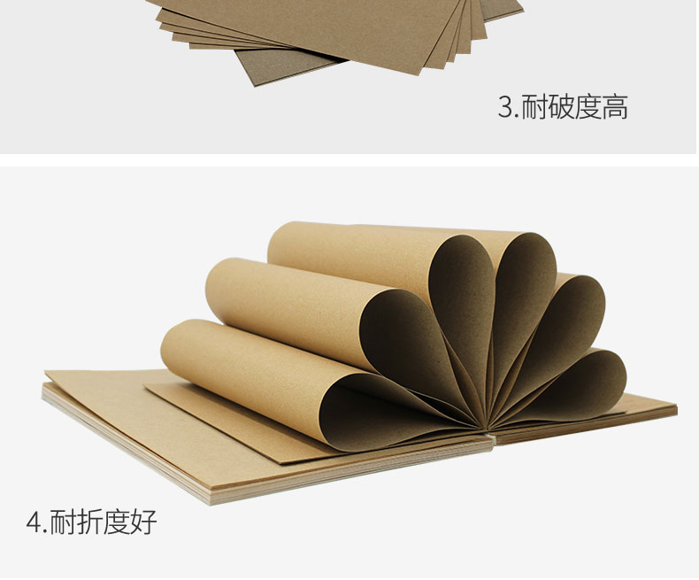 【克重范圍】: 80/100克 【產品規格】: 787*1092 889*1194 【耐破指數】: 100% 【產品特性】: 防潮、循環再生、耐破度高、耐折度好 【應用領域】: 包裝、牛皮紙袋、牛皮紙箱、文具、通用包裝